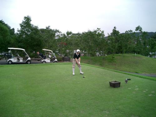 用意したクラブは、これまたゲームで知り合ったプリンさんからバッグ付きでもらったセット。「ひと昔前のだから…」って事で決して初心者には簡単とは言えないものだったらしいんだけど、この時はそんなことど〜でもええって感じで…。