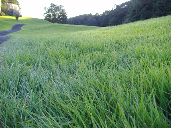 遠目には美しいグリーンも、積年のボールマークが無数に点在。コースが綺麗なだけにもったいないなぁ〜って感じ。