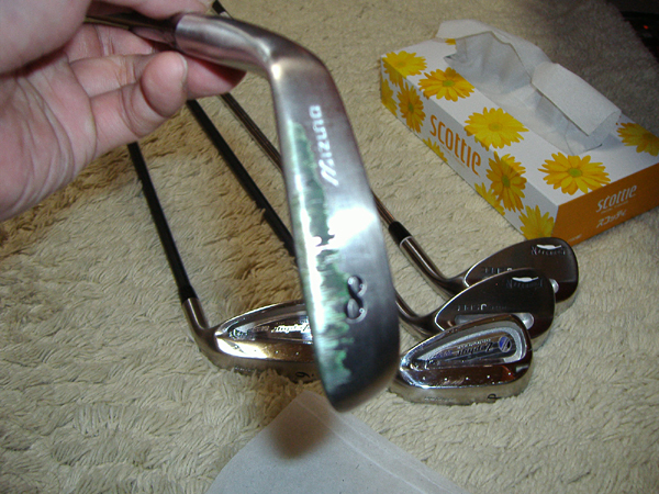 そして仕上げは同マジッククリーナーに付属していた艶出し保護スプレーで。この消しゴムがこんなに重宝するとは思わなかった。最も酷使したウェッジのフェイス部分も上から下へ角溝を削ってしまわないようやさしく入念に手入れしてピカピカに(^ω^)