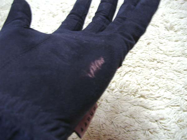 1月中旬に購入したオノフの人工スエードグローブ。黒と赤のお気に入りで練習にも使ってたのだけど、先々週のラウンドから手のひらの小指球あたりが薄くなりはじめ先週の練習でこんなになってしまった。