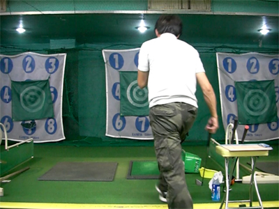 クラブヘッドが体の後ろから出るような感じで、コックは直前まで我慢してインパクトで爆発させる。しかしどうしてもプッシュアウト気味のボールが出たり、コックを我慢し過ぎると強烈にダフったり、自分勝手に修正を加えていると今度は全くクラブがインサイドから下りてきてなかったりの繰り返し。