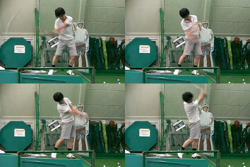 今日の練習では正面からのムービーも撮影してみた。そして、短いクラブでは意識して出来ていることが、ドライバーでは全く出来ていないことに気付く。写真はドライバーのスイング。多少マシになったと思っていたのだけれど、ドライバーになると左膝がかなり開く。
