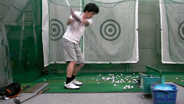 さて練習。「力まない」は実践できたつもりでいたけれど、ムービーを見て確認してみると、それはダウンスイング以降だけで、何故かバックスイングからトップまではは力んだように振り上げていた。力んでいないつもりが意外なところに力が入ってるもんだ。単に力まないってだけではなくて、もっとリズム良くスイングしなければ。
