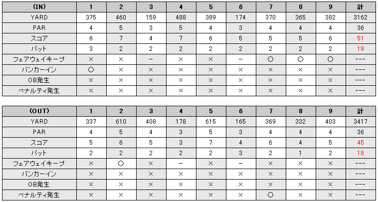本日のスコア