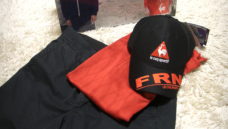 昨年、ベストスコアをどんどん更新していた頃にいつも着ていたアディダスの赤いジップポロ。でも最近はホワイト&ブルーを基調にしていたので、これを合わせるコーディネートがなかった。