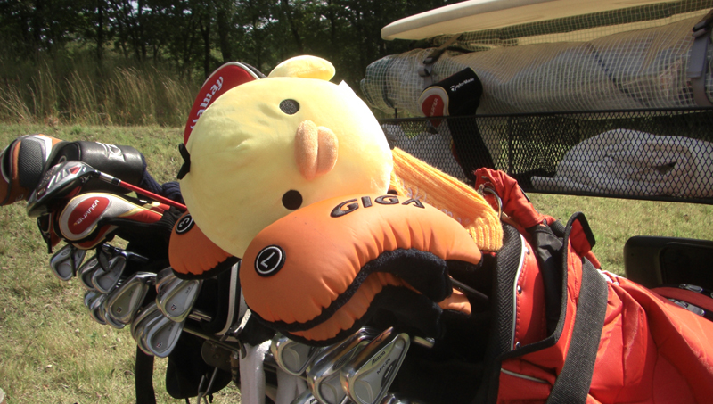 「どうせ当たらないのなら…」と、レディスドライバーをやめて自分用ドライバーを引っ張り出した(今日はドライバー2本挿し)のが前半の最終ホール。ボールは大きく吹け上がるスライスで右の土手下に。完全にミスショット。後半の4番ホールも広かったので再チャレンジ。偶然にもやや低空のパワーフェードが打ててナイスパー。しかし3度目使用の6番ホールは、超カス当たりで右100Y地点あたりにOB。チャレンジできたという経験は得られたが、これでは当分使えないかなぁ。
