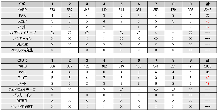 今日もティーショットは、前回同様に左側に立ってクローズスタンスを遂行したが、やはり気負いからか左に出て少しフェードする結果オーライの微妙なミスボールが続いた。したがって前半のフェアウェイキープ率は高いけれど少し微妙。そのうち球筋に合わせてやや右側に立つ戦法に変更したが、結果的にこれが失敗して連続ダボ。