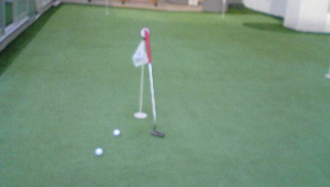 先日短くカットしたパターでロングパットを試してみたかったので、パッティング練習場が新設されたシチズンプラザの室内レンジへ。今日も妻と娘(3ヶ月強)を連れておでかけ気分。練習は室内レンジで奥さんと交代しながら合計約1時間。パッティング練習は30分ほど。