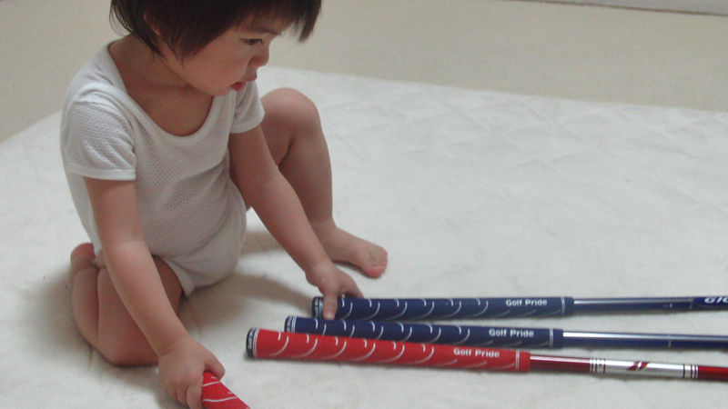 ウチだけじゃないでしょうけど、娘は家に新しいものが登場するととにかく触りたがるので、存分に触らせているところです。ヘッド同士がガチャガチャ当たっておっかないんですが、クラブより子供の方が大切なのでクラブはどうでもいいです(笑)。