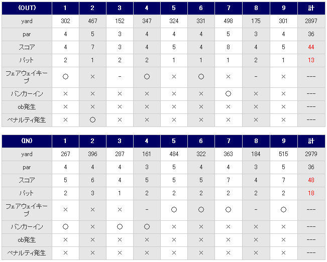 16番ホールでは、ティーショットを林の中へ打ち込み、そこから無理しての結果。最終ホールでも絶好の位置から2打目のUTを引っ掛けて林へ突っ込み、そこから無理をした。上がり3ホールは自分の統計上最もアベレージが良いゾーンなのに今回は3ホールで+6も打った。
