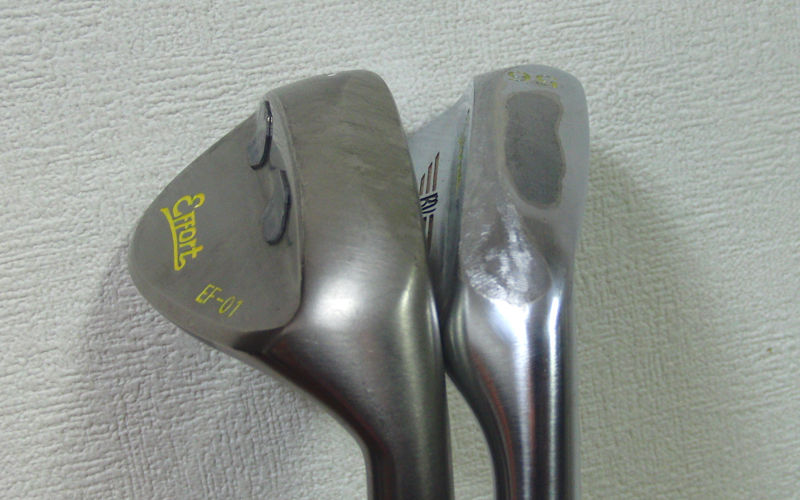 写真右がボーケイ・スピンミルドで、北の武器商人さん仕様でソールが削られたもの。こっちのソール形状が理想。シャフトは、ボーケイがDGでエフォートがNS950だったが、この比較でも自分はNS950の方が好みであることを再確認できた。この2本の経験は大きかった。