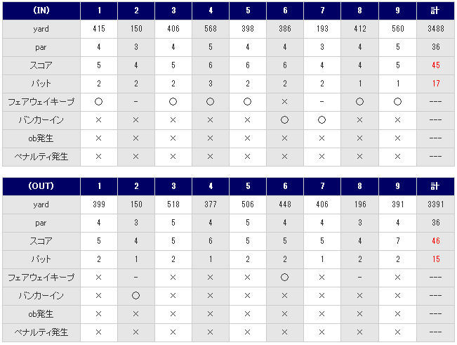今日の内容でこれなら上出来と思う部分もある反面、ちょっと悔しさも残ったので涼しくなってBグリーンだったら再挑戦しよう。長くて大きい方のAグリーンだと6,800Y以上になってちょっとアレなので(笑)。