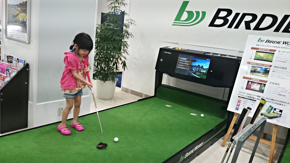 練習場に設置されているBIRDIE WORKS(バーディワークス)というパッティングマシン。もともとゴルフバー用に開発されたものでゲーム性が高いが、パッティング練習機として役立つのかをレポート。300通りの傾斜が作られる仕様。最長距離が2.4m、最大高低差が約5cm。