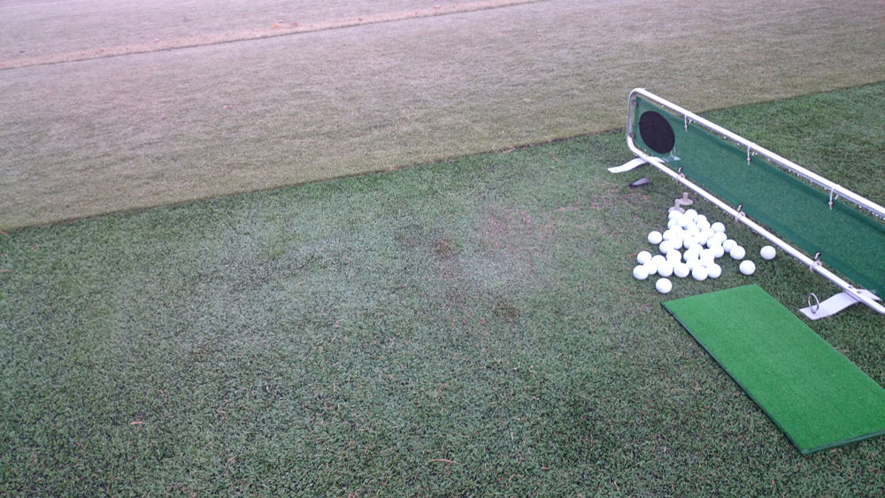ドライビングレンジは、程度の良い人工芝が敷かれていて砂も交じっていたので本番に近い自然な感じで練習できた。真っ平らじゃなくて微妙にデコボコしているので、これはかなり良かった。