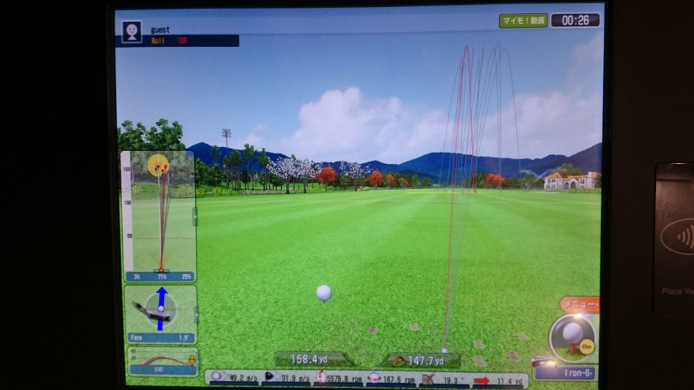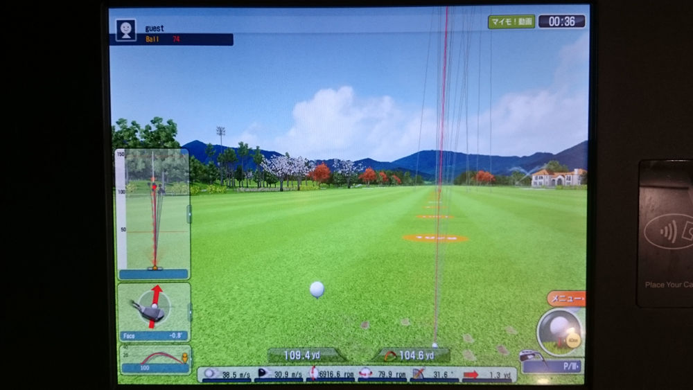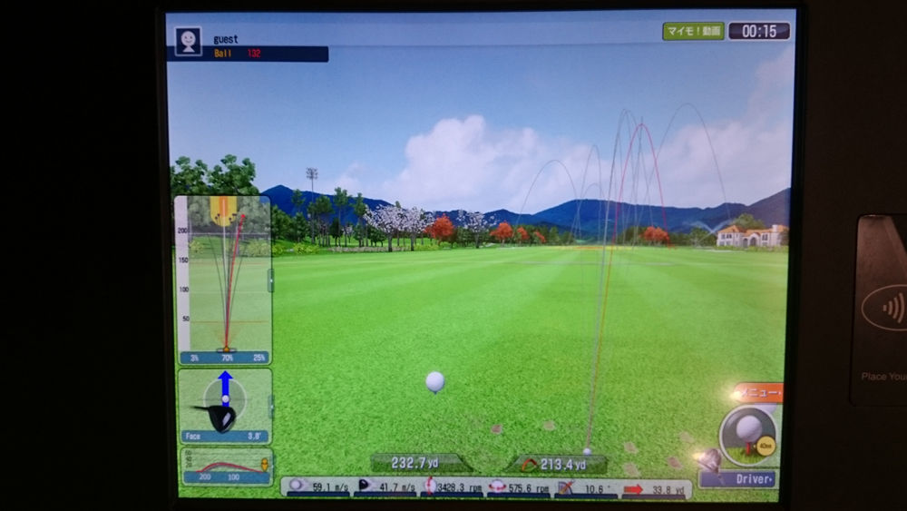 室内練習場でもこのシミュレーターのおかげで熱心に練習に打ち込めています。方向性や球筋じゃなくて飛距離に走ったのは失敗でしたけど、心を入れ替えて頑張ります。