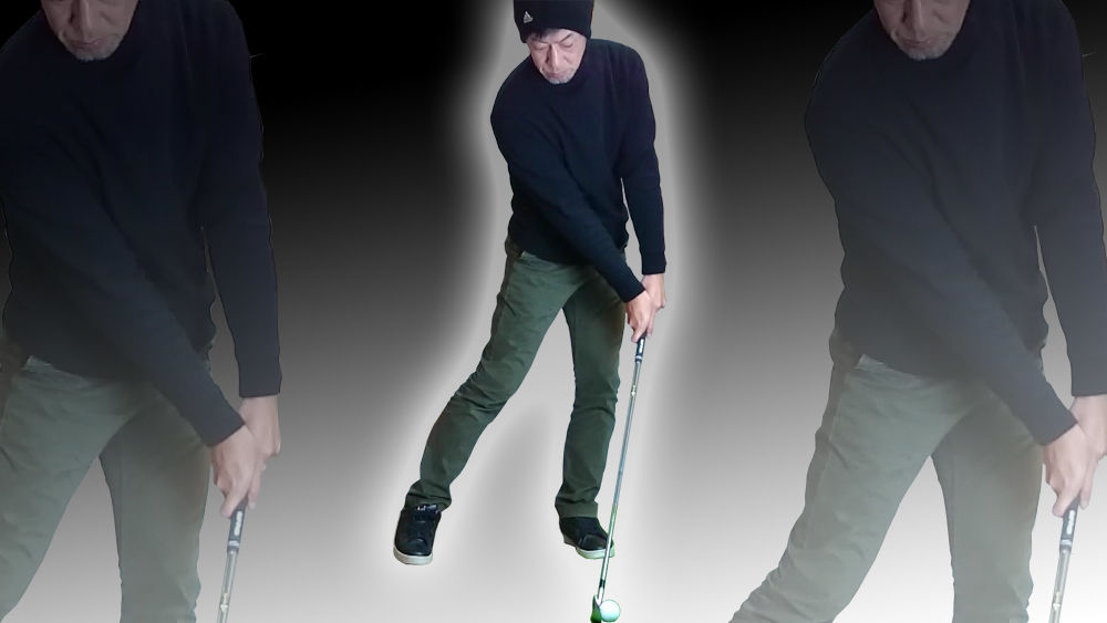 自分目線からはこんな感じ。このクラブは6番アイアンだが、かなりフェースが立ちながらボールへ直接コンタクトするイメージ。