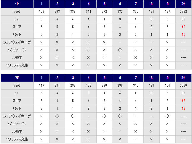 もうこの見だしで全部言い切った感じ。先週から着手の「切り返すタイミングを早く!」ってやつがまだ完成途上もいいとこなので、スイングはぎくしゃくてバラバラ。練習場での感覚を全く再現できず。