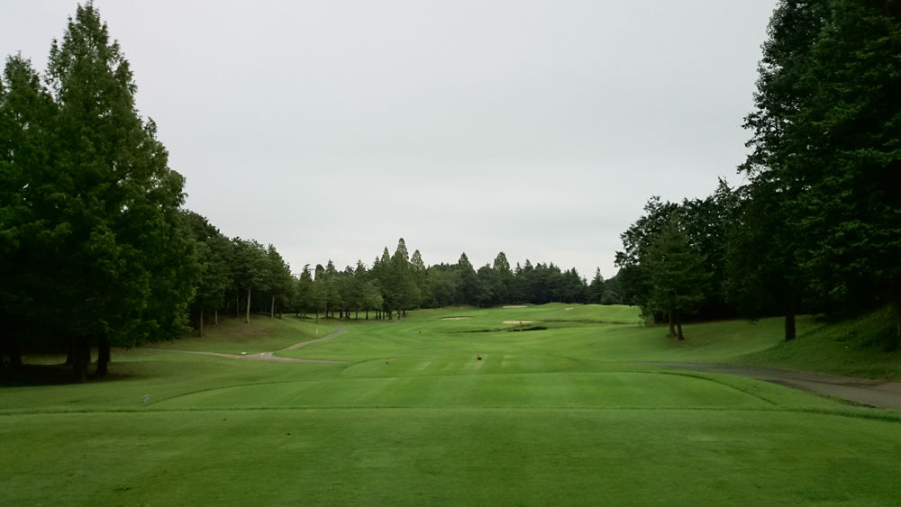 中→東/Gold Tee(レギュラー)/5,418Y(Aグリーン・小さくて距離短い方)/曇り時々小雨/23℃〜24℃/微風/早朝スルー/セルフ/自走式カート/半袖短パン。湿度高く少し汗ばむ。雨は超小雨。