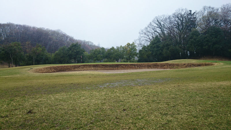 パー71でコースレートのないコース。ベントグリーンがメンテナンス中のため高麗グリーン使用。速さは7.5フィート+雨で重かった。天候のせいか所々で傾斜地にカップ切ってあって打ち切れずシビれた。