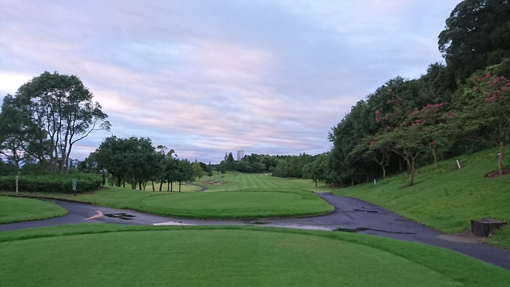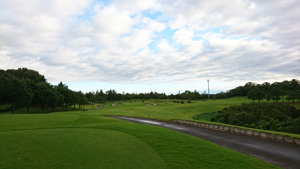 昨夕であがるはずの雨が茨城では日の出前まで降っていたが、ティーオフ時間にはすっかり止んだ。しかも水はけの良いコースで助かった。