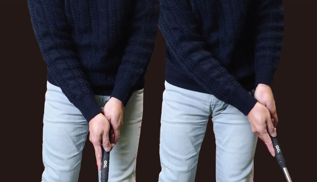 ただこれもまた、ショートパット時だけはややハンドダウン気味に構えて行う。またその分前傾も深くしている。
