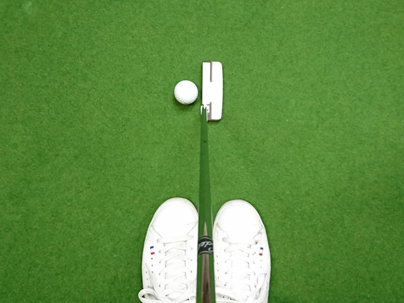 最初は自分自身もそう思った。でも足を揃えて立つとこうなる。ちょうどパターヘッドが身体の真ん中という具合に。