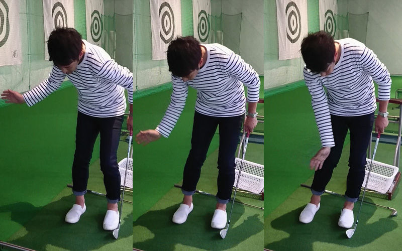 ただやり過ぎると、インサイドにクラブが引いてしまいやすくなるので、グリップを体からやや離していくというイメージを少し持つという助言ももらいました。