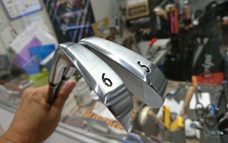 ロフト角は5番が27度、6番が30度で標準。仮組みの段階で何度も打ち、どこまで短くしようか?を一緒に考えてもらって組み方にも調整を加えてもらいました。